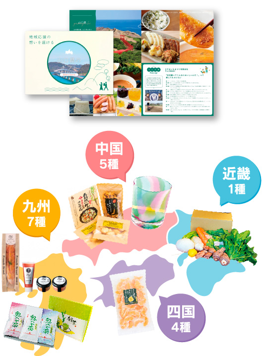 近畿地方 1種・中国地方 5種・四国地方 4種・九州地方 7種からご希望の賞品を1種選んでご応募ください。