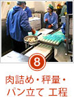 出来上がったすりみは、充填機により10kgずつポリ袋に詰め、冷凍パンに入れられます。(この冷凍パンに詰める作業を「パン立て」といいます。)この後、急速凍結して箱詰めし、金属探知機によるチェックを行ってから保管・搬出します。