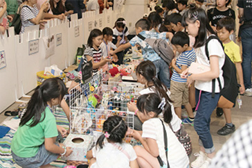 出店も買い物も子どもたちだけで行うフリーマーケット。出店できるのは小学3~6年生で、お買い物できるのも小学生以下の子どもたちです。開催中には売上表の作り方、終了後には収支バランスシートの作り方も学習してもらい、モノを大切にする心だけでなく、お金を大切にする心も学べます。
