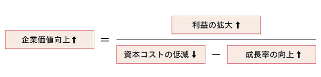 統合報告書の開示フレームワークを意識しつつ、「企業価値の算定式」を用いて、マルハニチログループの経営戦略・取り組みと、企業価値向上の結びつきを分かりやすく説明しています。この算定式を軸にした構成により、マルハニチログループが中長期でめざす姿を可視化し、より明確に示しています。