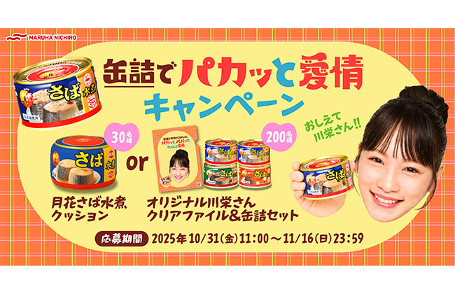 また、11月1日(土)から全国で放映開始となる、マルハニチロの魚介缶詰の新TV-CMおよびWEB-CMとも連動し、出演している俳優の川栄李奈(かわえい りな)さんが登場するキービジュアルも使用しています。
