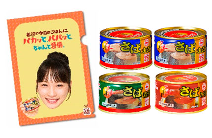 クリアファイルサイズ:A4 缶詰:計4缶(「月花さば水煮」2缶、「月花さば煮付」「月花さばみそ煮」各1缶) |