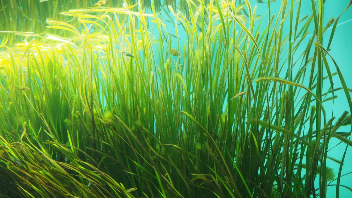 アマモとは、水深の浅い砂地に根を張るアマモ科の種子植物のこと。日本各地で見られ、その葉は小魚や小型甲殻類の棲みかになります。また、成長に必要なリンや窒素などの栄養素を海水から吸収することで、水質の浄化にも貢献。さらに光合成によって二酸化炭素を吸収し、酸素を作ることで、海中だけでなく人間社会にもその恩恵をもたらしています。最近では、海底に堆積した枯れたアマモが長期間にわたり炭素を貯留する“ブルーカーボン”生態系としても注目されています。