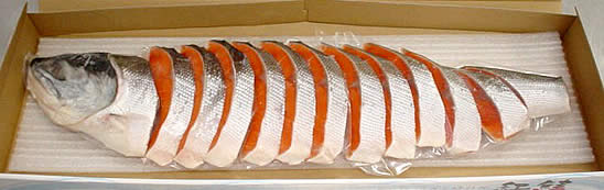 以上のように意外に食塩浸透が少ないのが本法の特徴です。このほか1週間~10日間漬け込むこともあり、この間に魚体の熟成が進みサケ特有の旨みがでてきます。